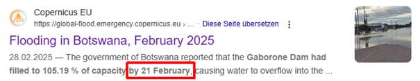 floodings in this area. Gabarone Dam broken.
