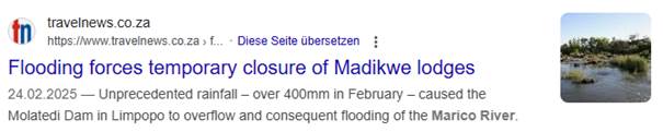 due to the floods at Madikiwe River Lodge.