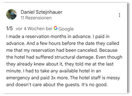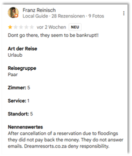Kindly urgently attend to the refund for Mr Franz Reinisch. See the attached review posted on social media.