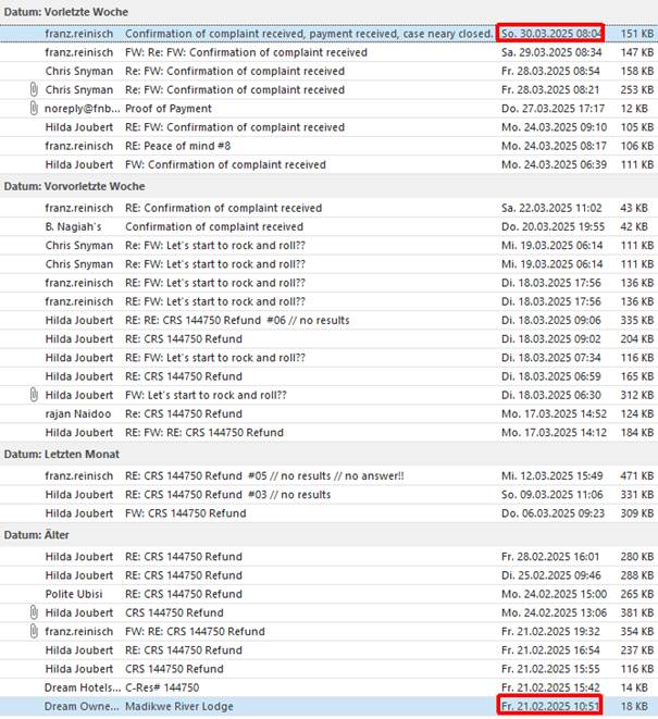 21.2.2025 10:51 (4 days prior the booking) we get an Email from Dreamresorts.co.za